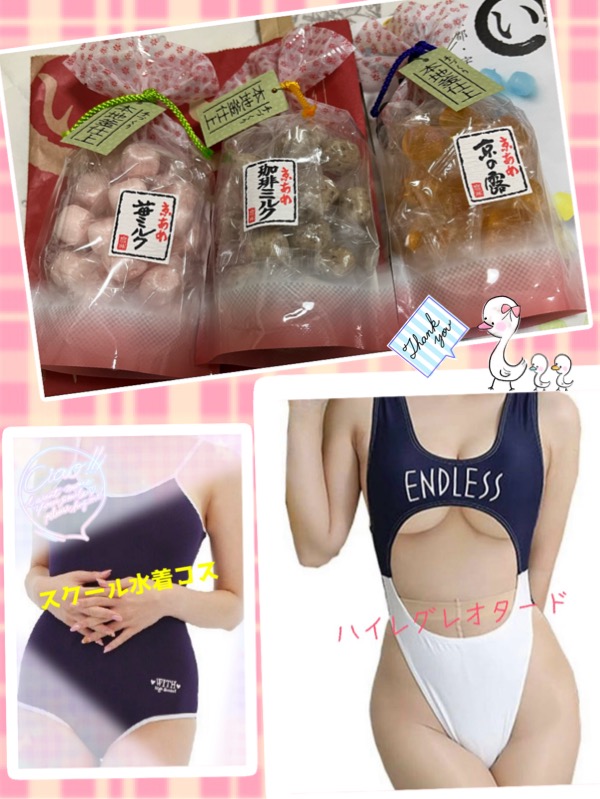 スクール水着コスや、買って来てくださったレオタードも「似合う♡」と喜んでいただけて、京都の美味しい飴セット差し入れも嬉しかったです♫