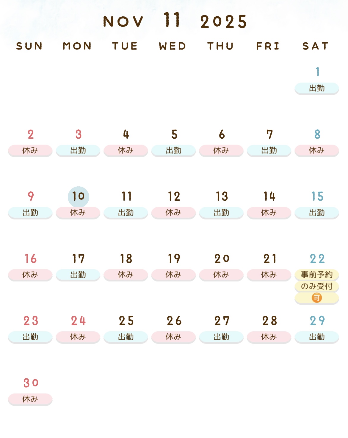 ♡ 11月の出勤予定 ♡ 11 / 13 更新🆙